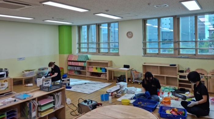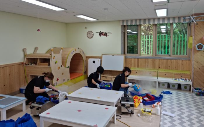 공립단설 한류유치원 교구재를 스팀세척살균소독 하였습니다.