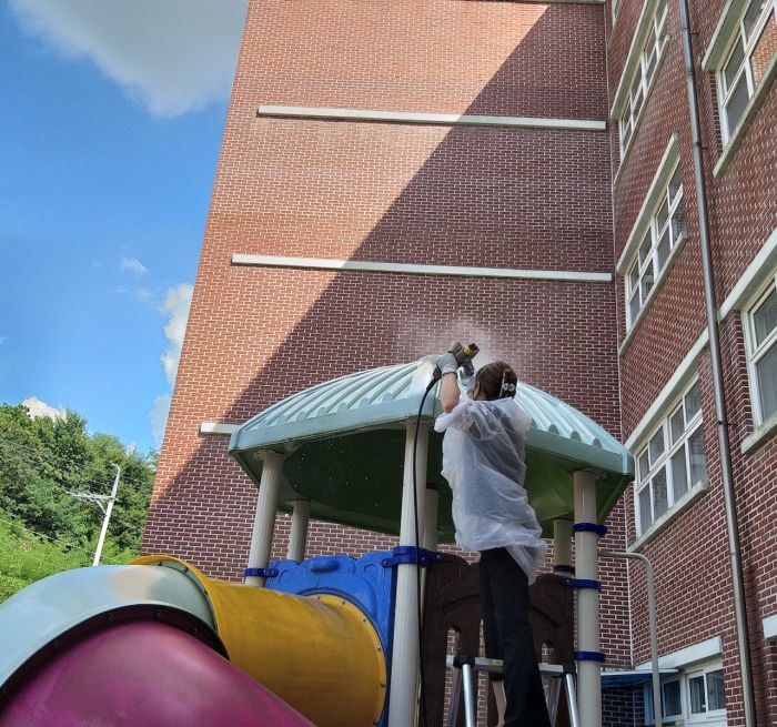 남양초병설유치원 바깥놀이터를 세척작업하였습니다.