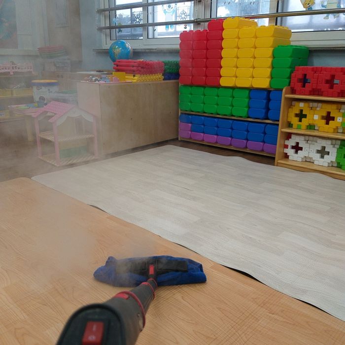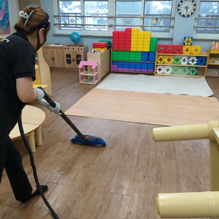 대남초병설유치원 책걸상과 교구장, 교구재를 스팀세척살균소독 하였습니다.