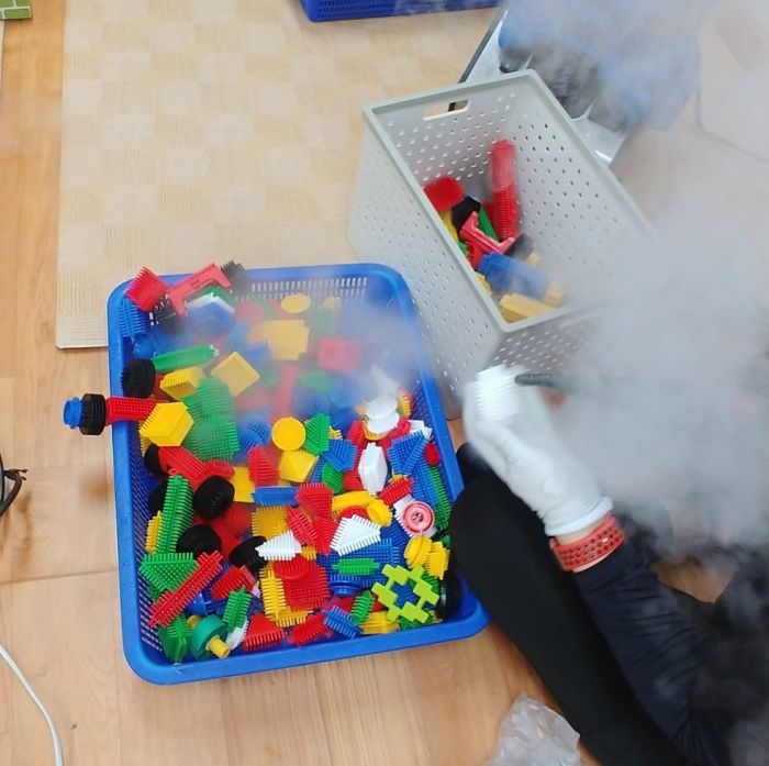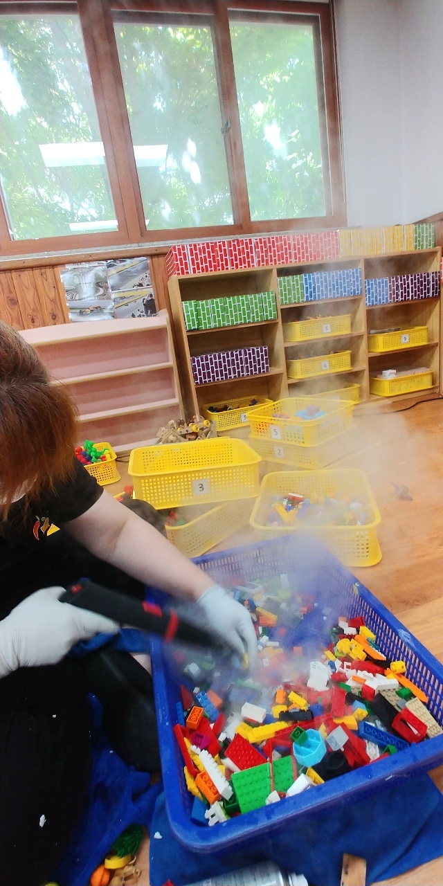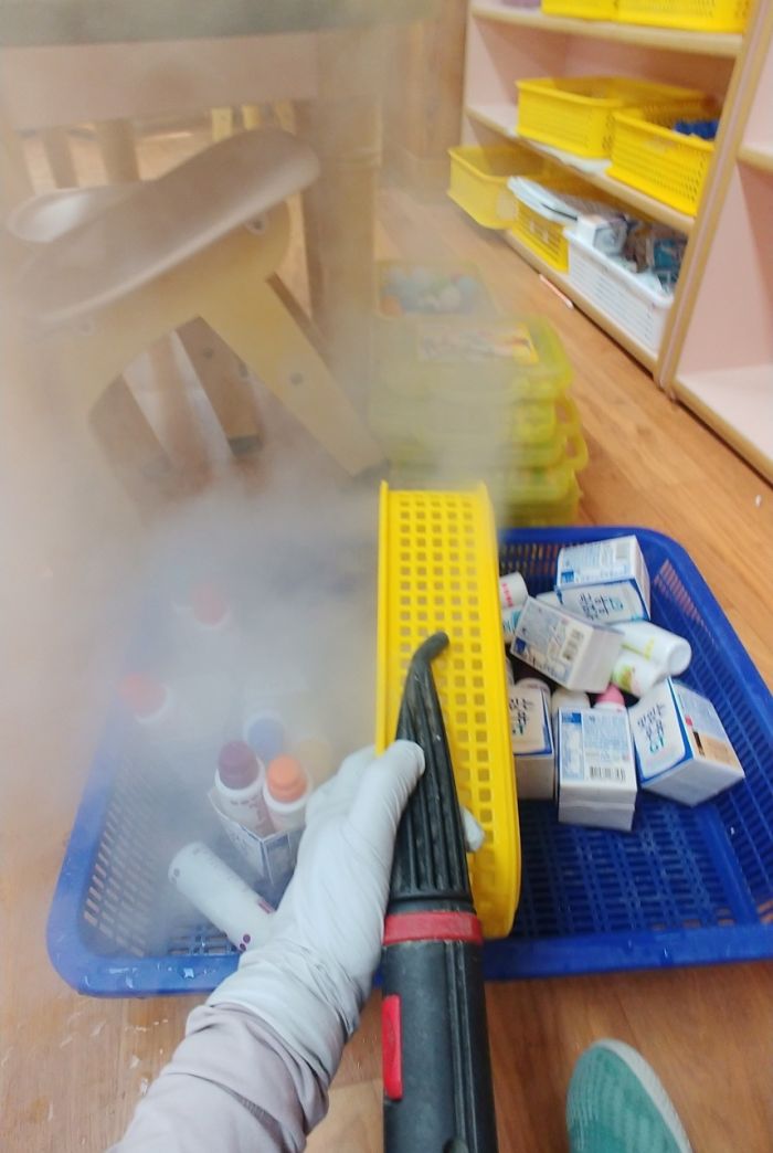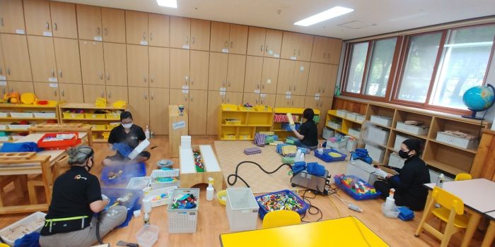 용인 백현초병설유치원 책걸상과 교구장, 교구재를 스팀세척살균소독 하였습니다.