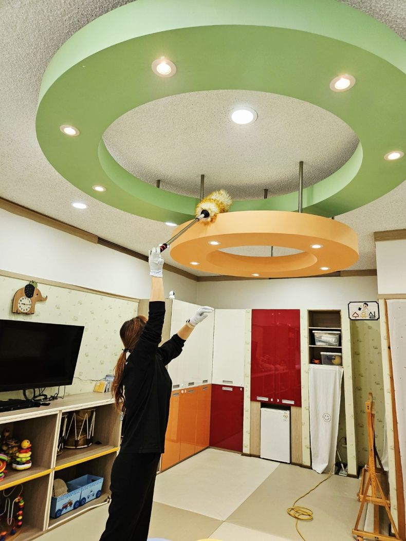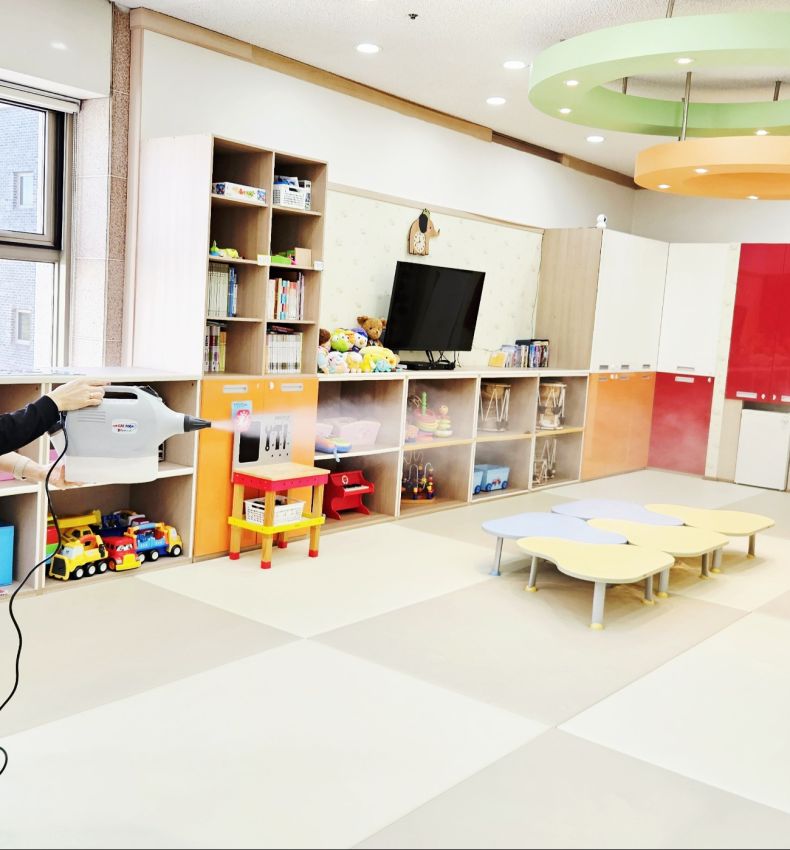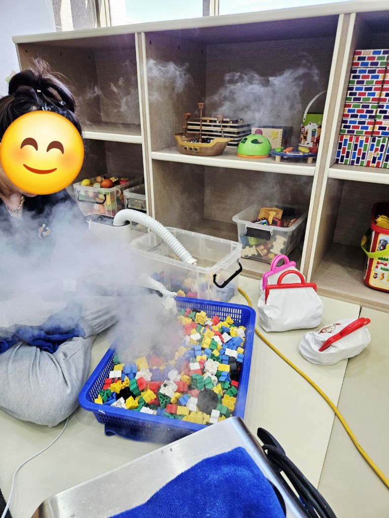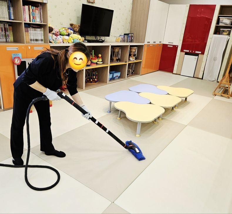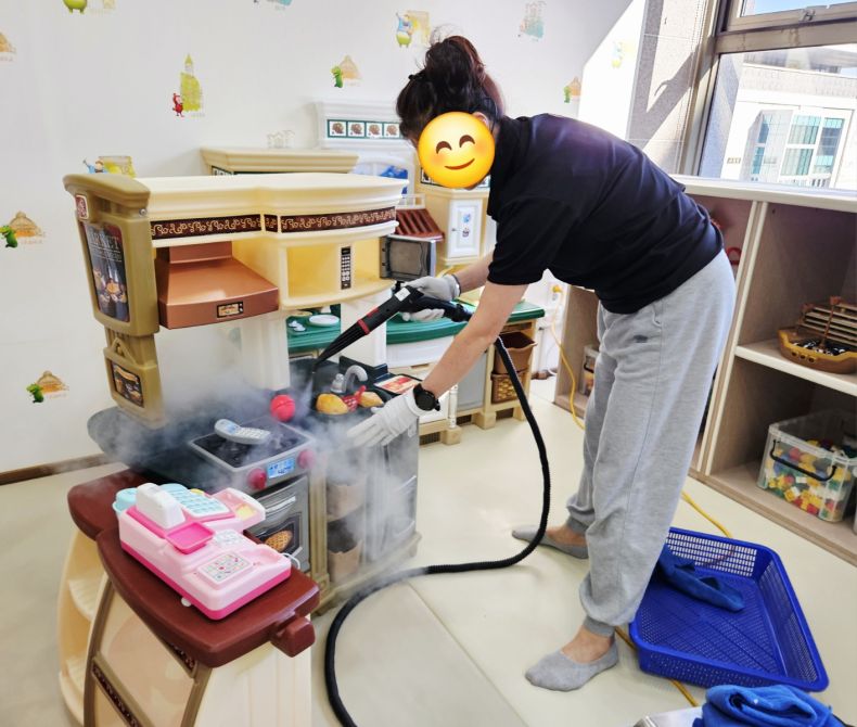 장난감과 시설물을 스팀세척살균소독 하였습니다.