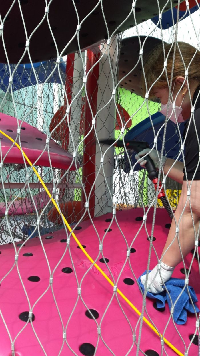 콩나무시설물과 클라이밍존을 스팀세척살균소독 하였습니다.