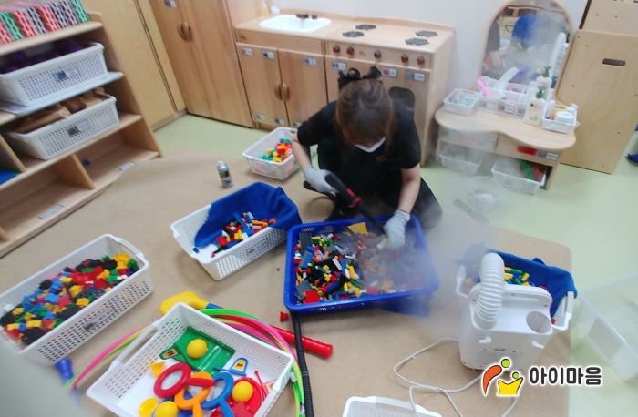교구장, 교구재,책걸상,장난감,카페트등을 스팀,세척,살균,소독하였습니다.