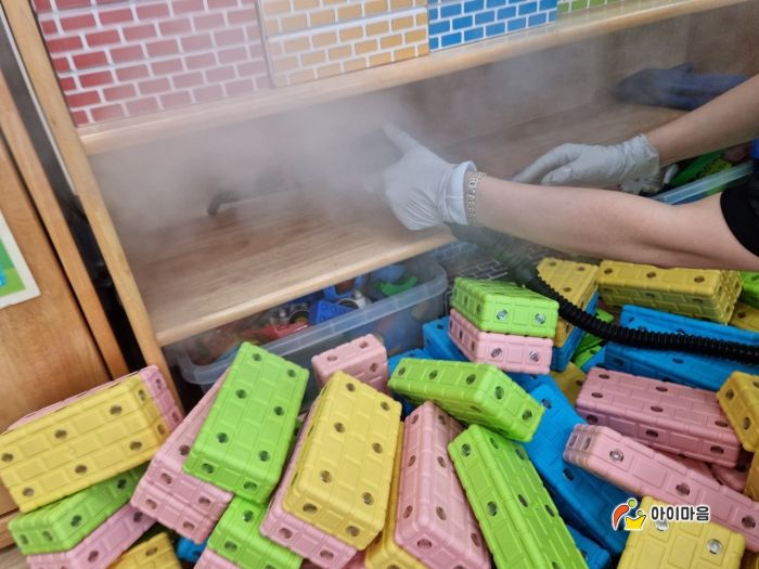 광교 단설 꿈누리유치원 책걸상과 교구장, 교구재를 스팀세척살균소독 하였습니다.