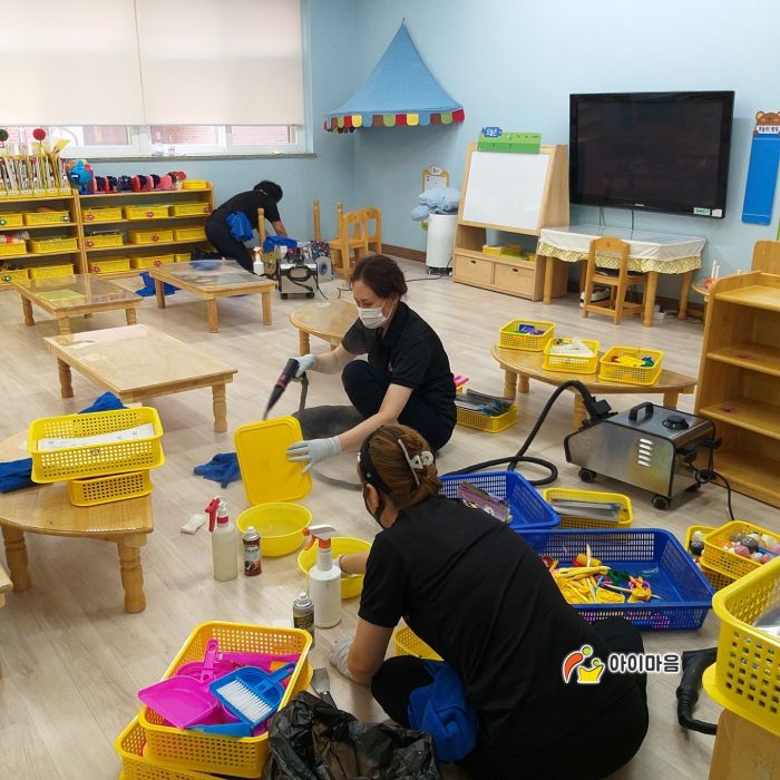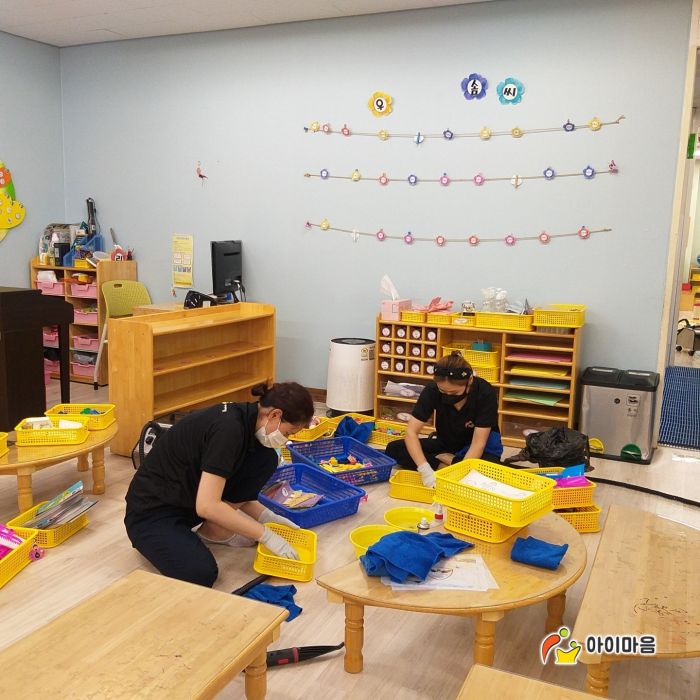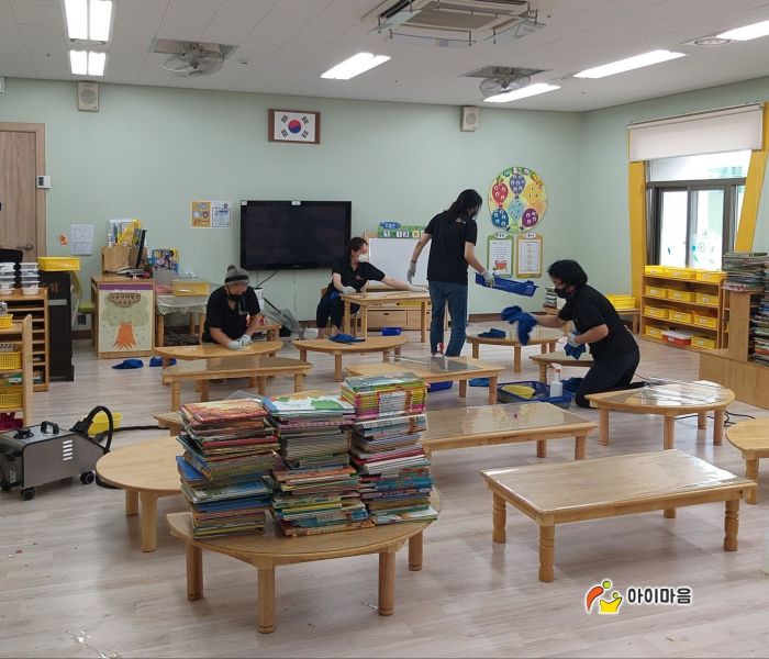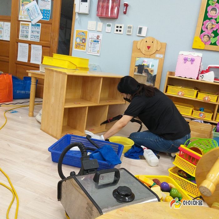 인천 고잔초병설유치원 책걸상과 교구장, 교구재, 창틀을 스팀세척살균소독 하였습니다.