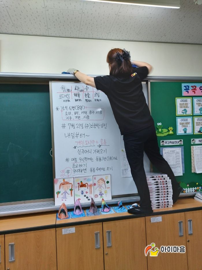 인천백석초 돌봄4개실 책걸상과 교구장, 교구재를 스팀세척살균소독 하였습니다.