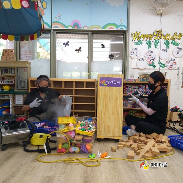 화성 진안초병설유치원 책걸상과 교구장, 교구재를 스팀세척살균소독 하였습니다.