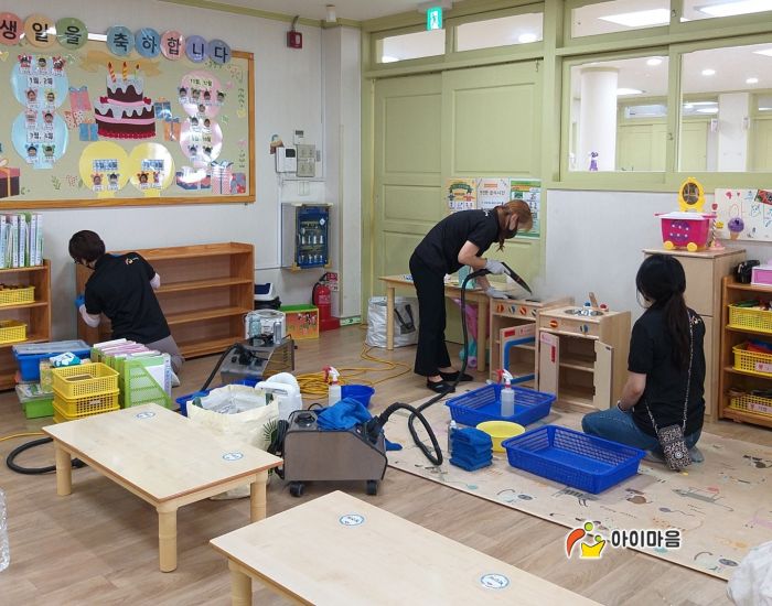 인천능내초병설유치원 책걸상과 교구장, 교구재, 창틀과 바닥을