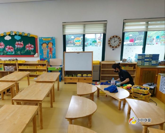 청주 개신초병설유치원 책걸상과 교구장, 교구재를 스팀세척살균소독 하였습니다.