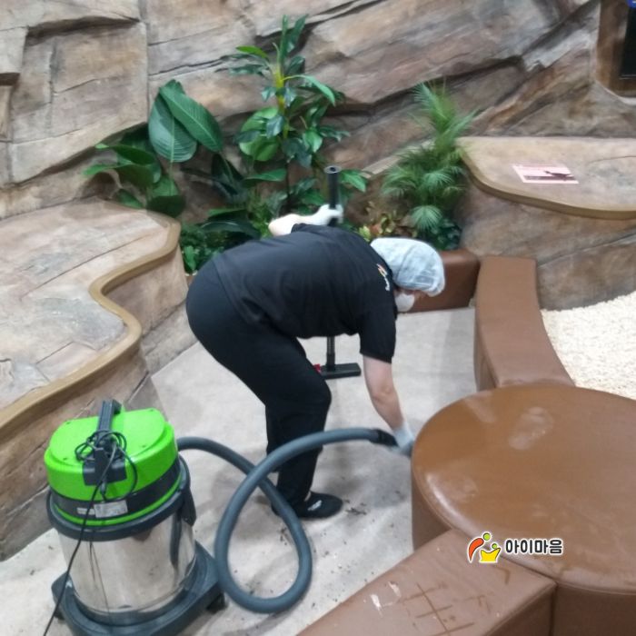 화성어린이문화센터 화석발굴체험장 편백나무칩과 시설물을 세척소독 하였습니다.