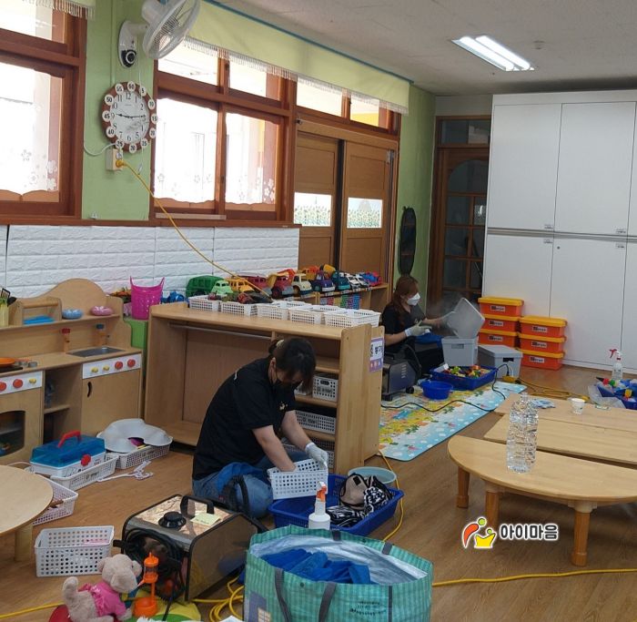 책걸상과 교구장, 교구재, 창틀 등을 스팀세척살균소독 하였습니다.