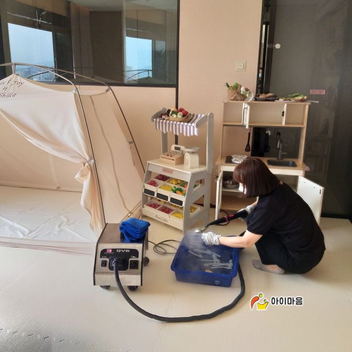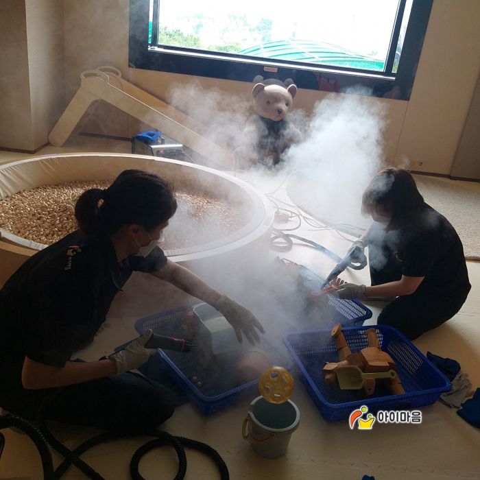 호텔신라 키즈룸 편백나무칩과 카펫, 놀잇감등을 스팀세척살균소독 하였습니다.