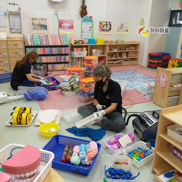 플라스틱놀잇감과 카펫을 스팀세척살균소독 하였습니다.