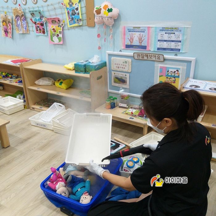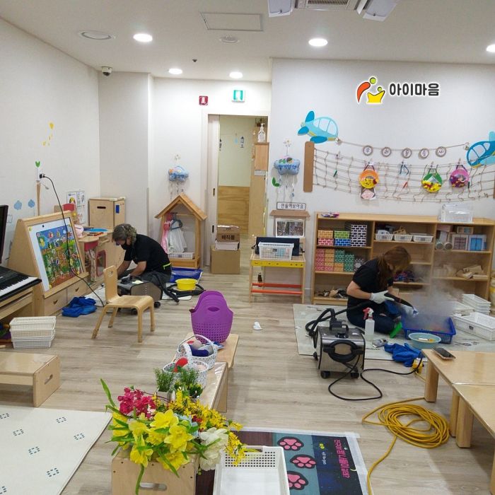 책걸상과 교구장, 교구재를 스팀세척살균소독 하였습니다.