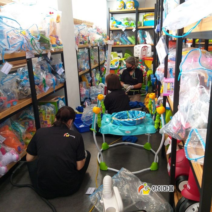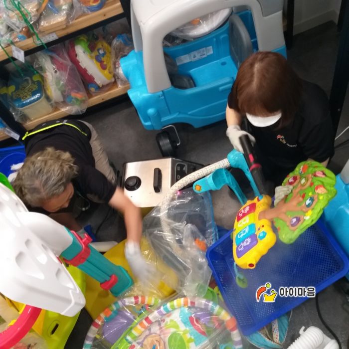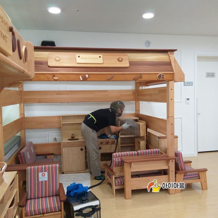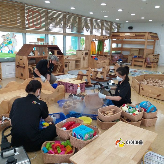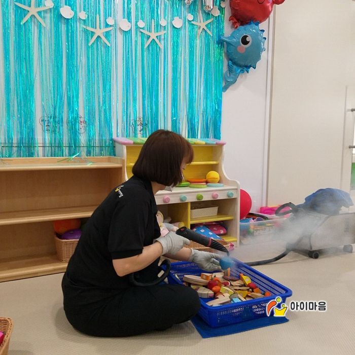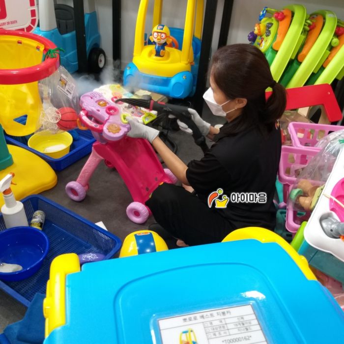 장난감과 시설물을 스팀세척살균소독 하였습니다.