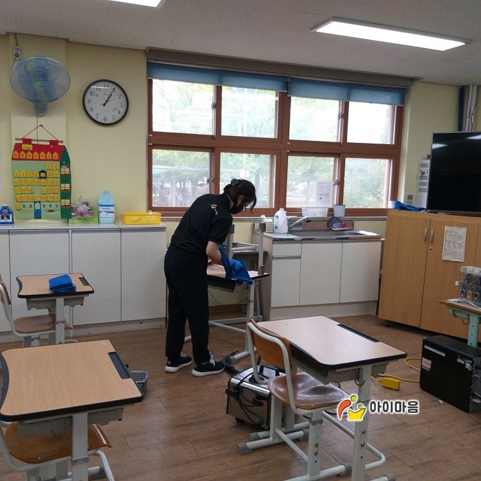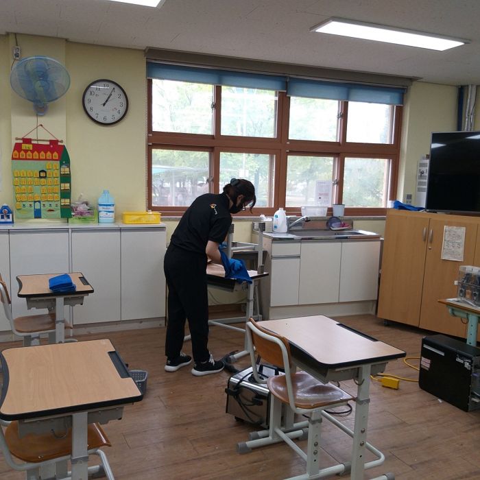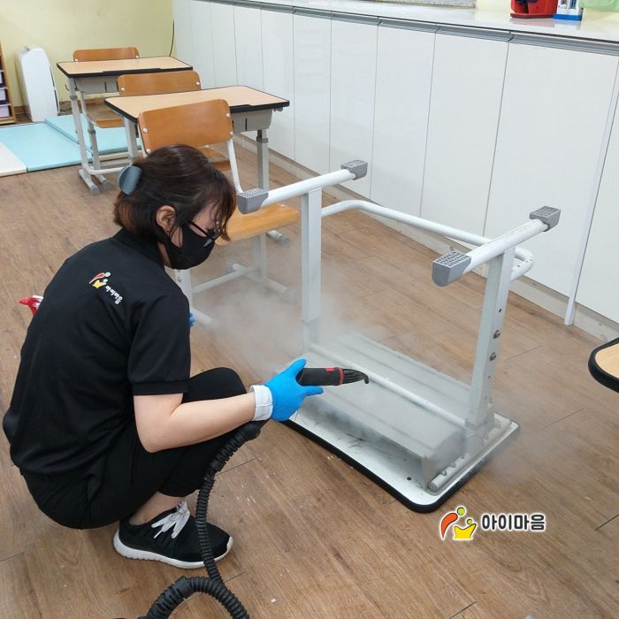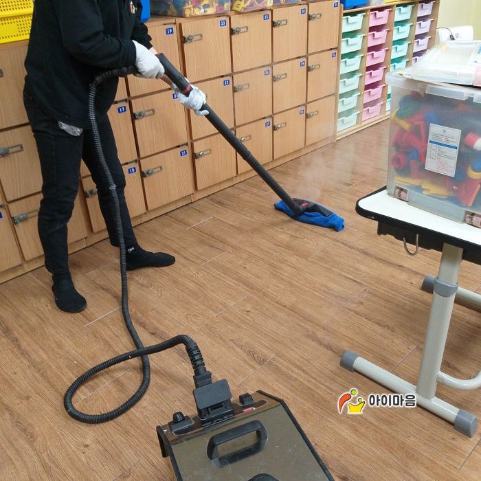 가수초돌봄교실 책걸상과 교구장, 교구재와 바닥을 고온 스팀세척살균소독 하였습니다.