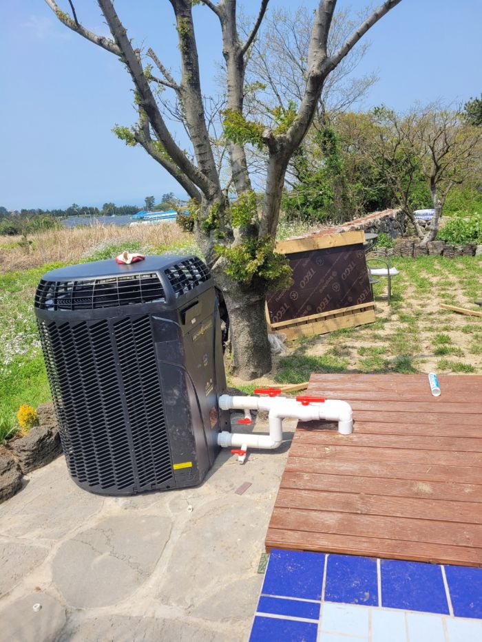 2021년04월15일~4월16일 제주도황토방 개인주택 2채 각각1대씩 히트펌프외 염소생성기까지 풀쎄트 설치