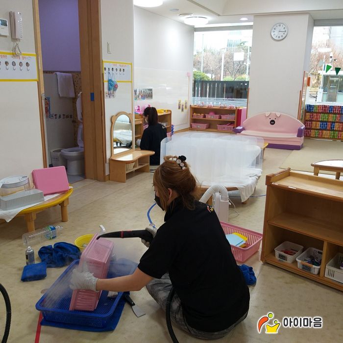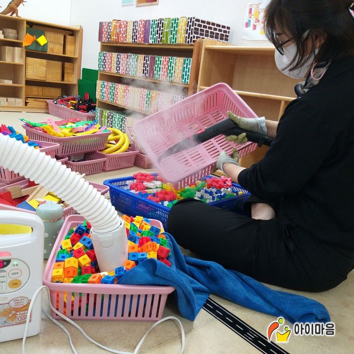 교실전체 교구장,교구재,책걸상,장난감등을 스팀,세척,살균,소독하였습니다.