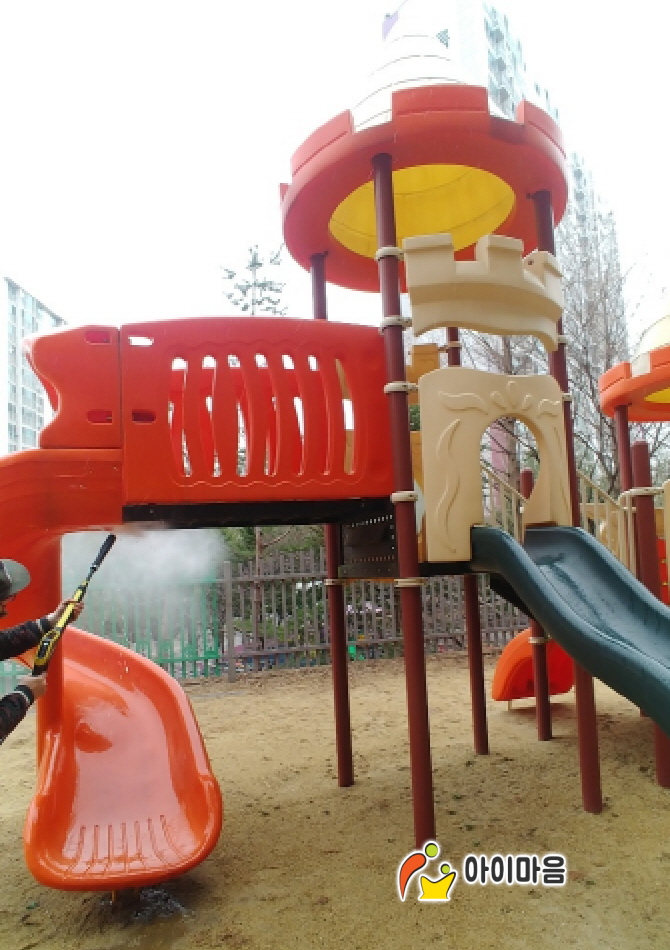 의왕 갈뫼초 야외놀이터 놀이기구를 세척 및 소독을 진행했습니다.
