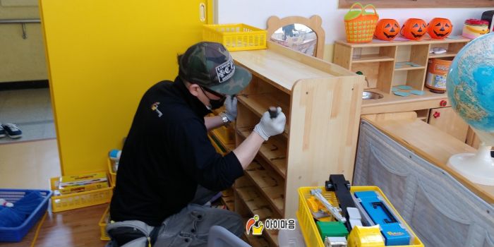 용인 왕산초병설유치원의 교실전체 교구장,교구재,책걸상,장난감등을