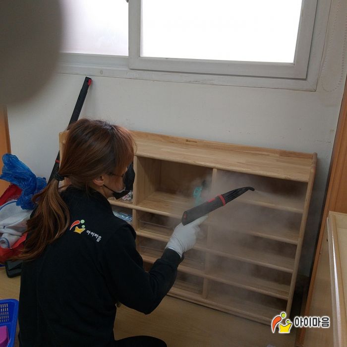 교구장,교구재,책걸상,장난감등을 스팀,세척,살균,소독하였습니다.