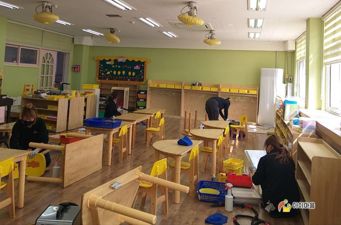 평택 지산초병설유치원의 교실전체 교구장,교구재,책걸상,장난감등을