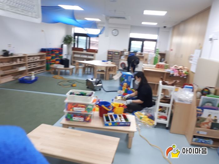 한샘어린이집의 교실전체 교구장,교구재,책걸상,장난감,카페트등을