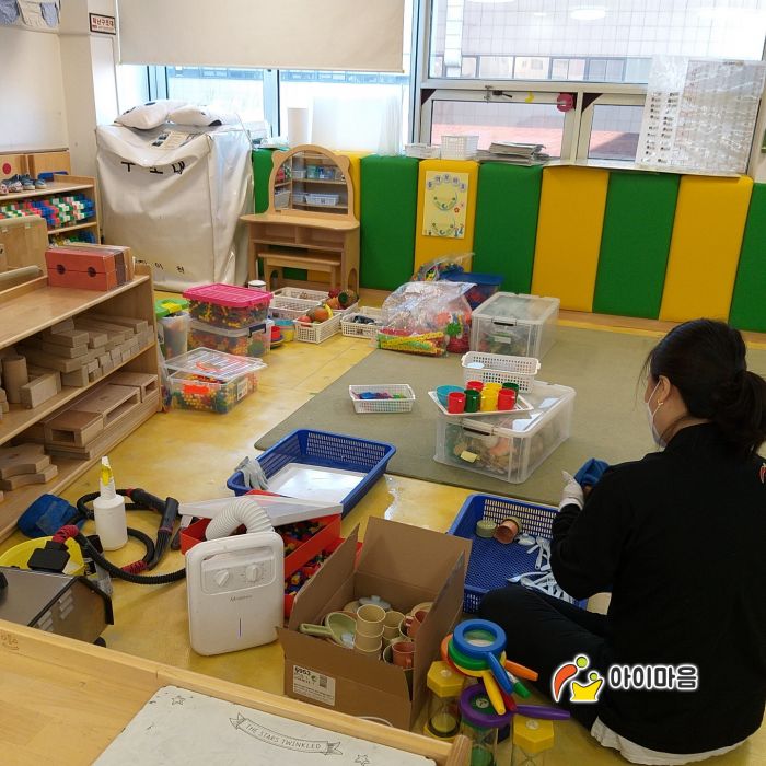 우리은행 어린이집의 교실전체 교구장,교구재,책걸상,장난감등을