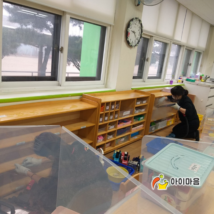 화성 송산초병설유치원 책걸상 및 교구장, 교구재를 스팀세척살균소독 하였습니다.