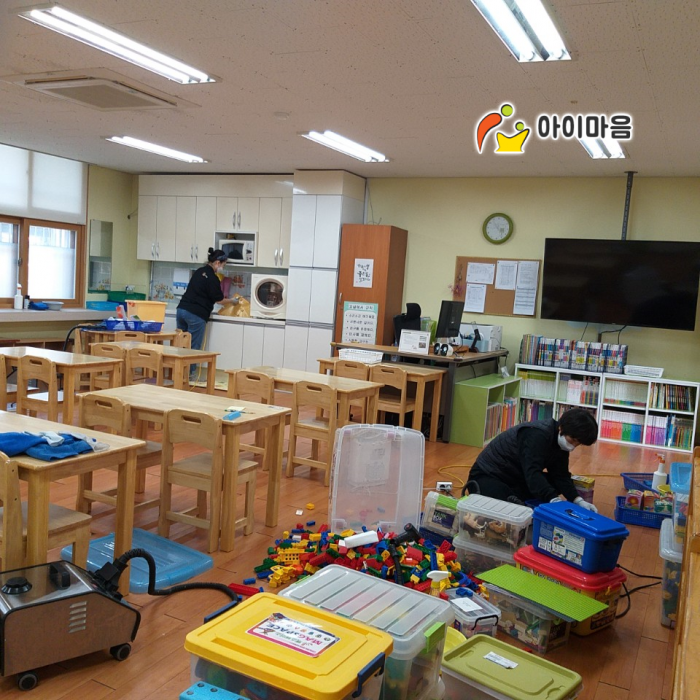 책걸상과 교구장 교구재를 스팀세척살균소독 하였습니다.