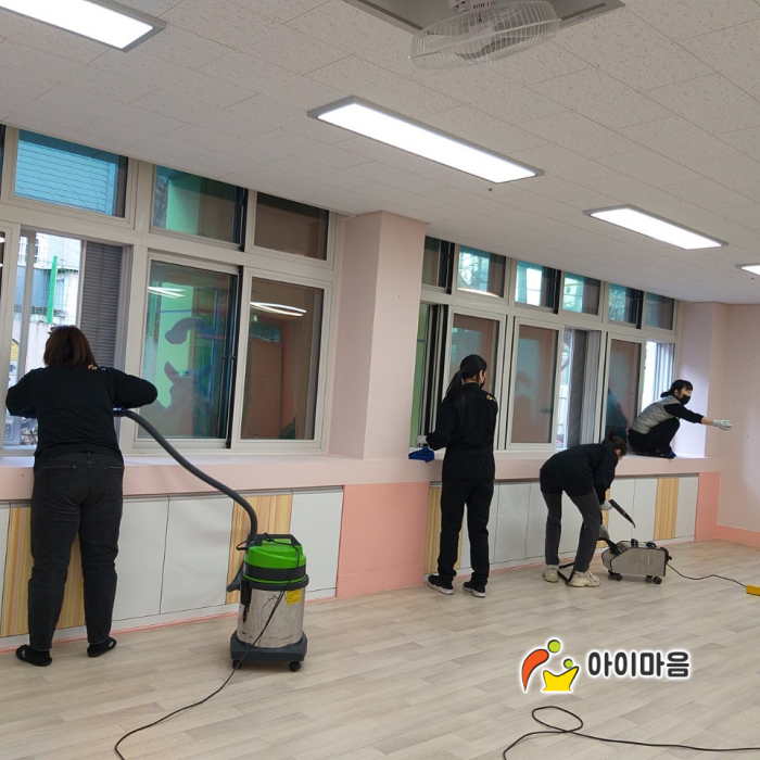 공사가 끝난 유치원건물 전체공간과 모든창틀, 바닥스팀까지 완벽하게 마친 후