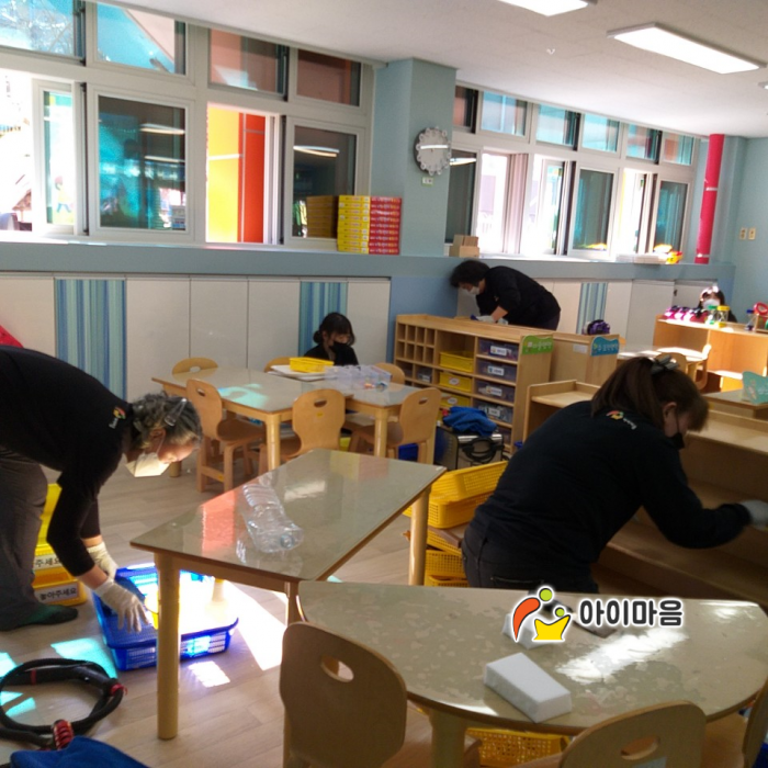 이동되었던 교구재와 교구장들을 스팀세척살균소독 하였습니다.