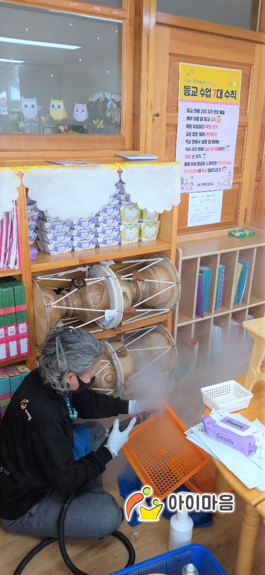 책걸상과 교구장, 교구재를 스팀세척살균소독 하였습니다.