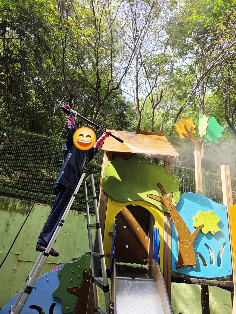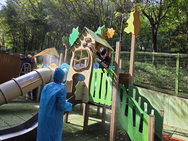 서울정심초바깥놀이터 시설물을 세척작업 하였습니다.