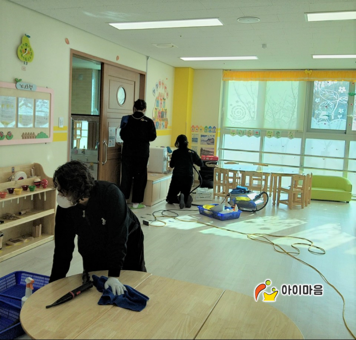 배곧초록유치원 책걸상 및 교구장 교구재를 스팀세척살균소독 하였습니다.