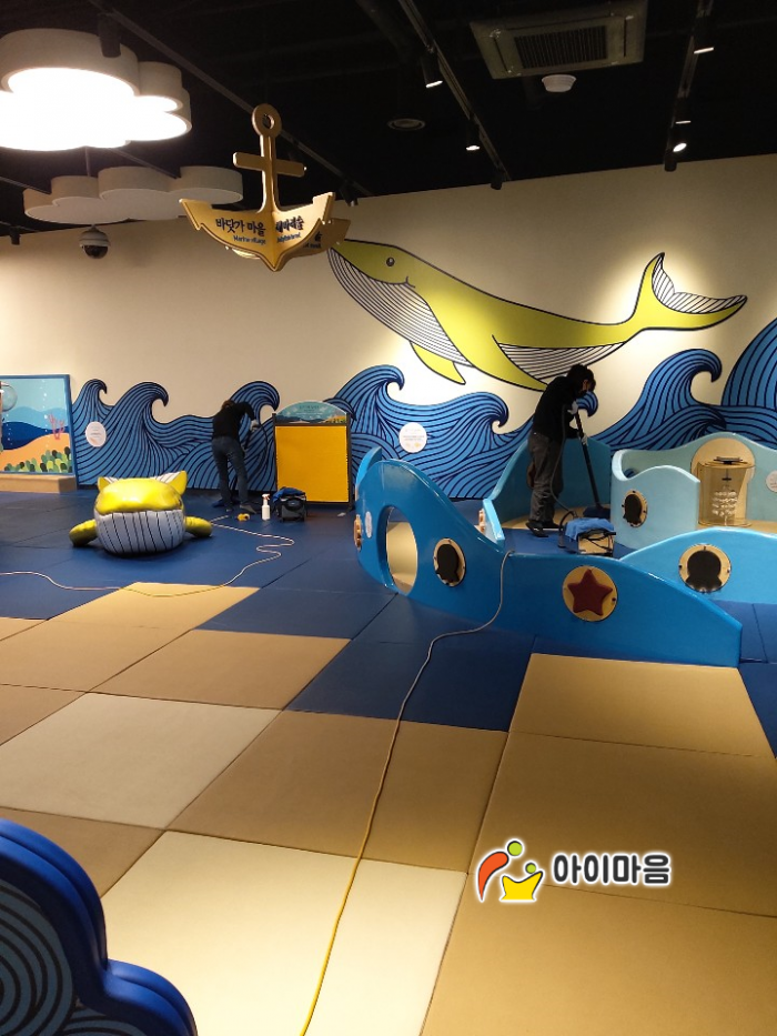 경기북부어린이박물관 편백나무칩체험실과 바다놀이터 시설물과 바닥매트를