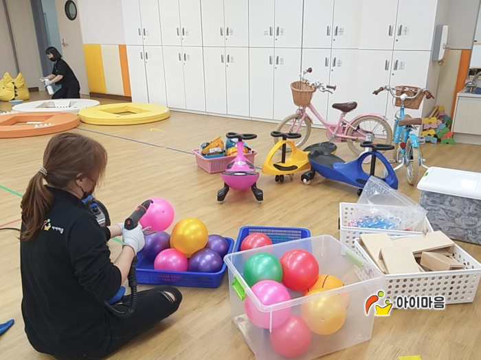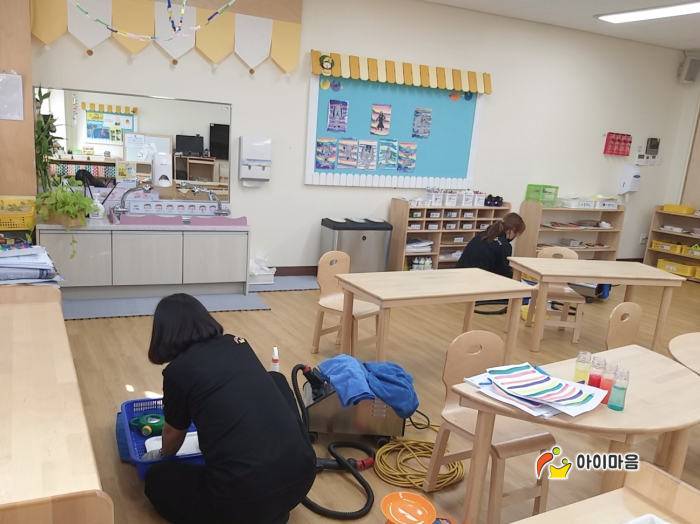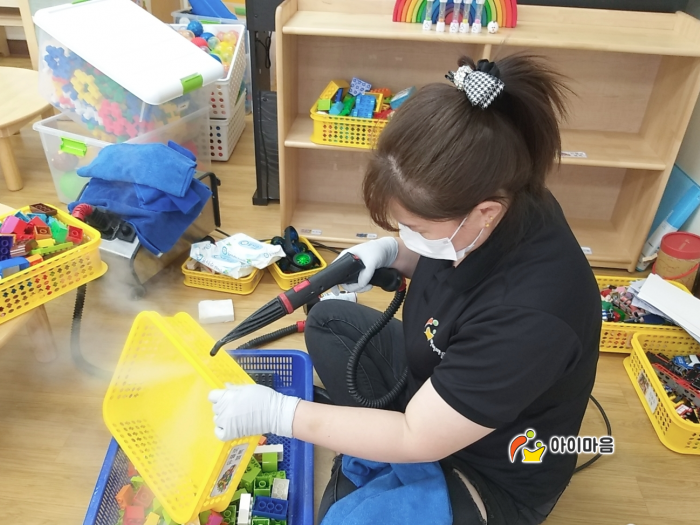 책걸상 및 교구장, 교구재, 승용완구등을 스팀세척살균소독 하였습니다.