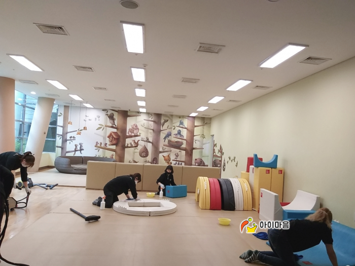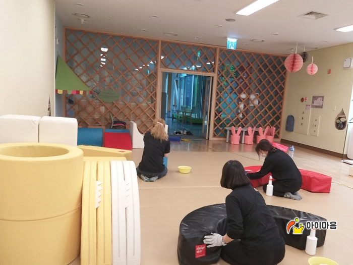 맨발로 뛰어노는 매트도 고온으로 뽀송뽀송하게 살균처리 해드렸습니다.