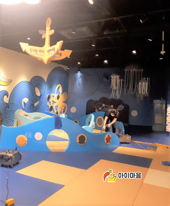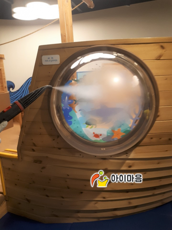 바다놀이터 바닥 고온스팀살균소독을 하였습니다.