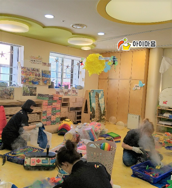 플라스틱놀잇감을 스팀세척살균소독 하였습니다.