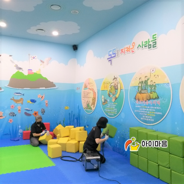광교박물관 어린이체험실 편백나무칩과 카펫, 매트등을