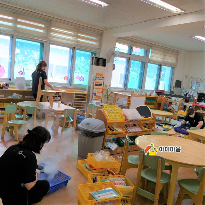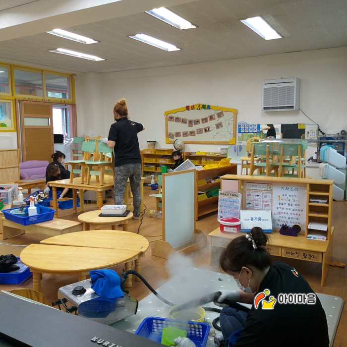 책걸상과 교구장, 교구재 등을 스팀세척살균소독 하였습니다.