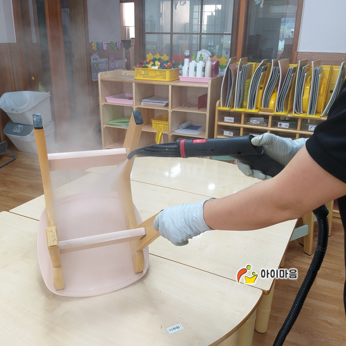 책걸상과 교구장, 교구재등을 스팀세척살균소독 하였습니다.