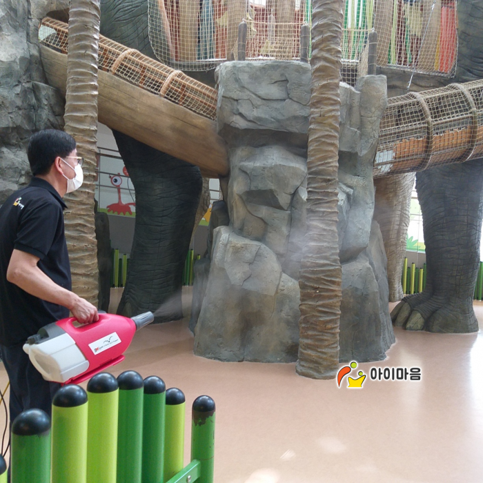 1일차엔 1층 편백나무놀이터 편백칩과 전 시설물을 작업완료하였고
