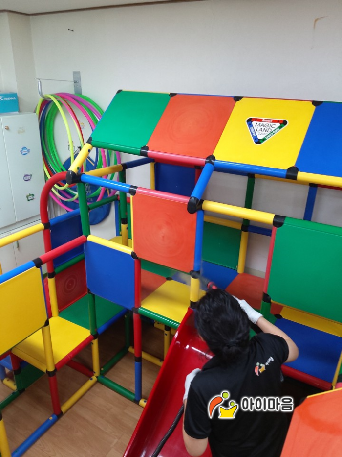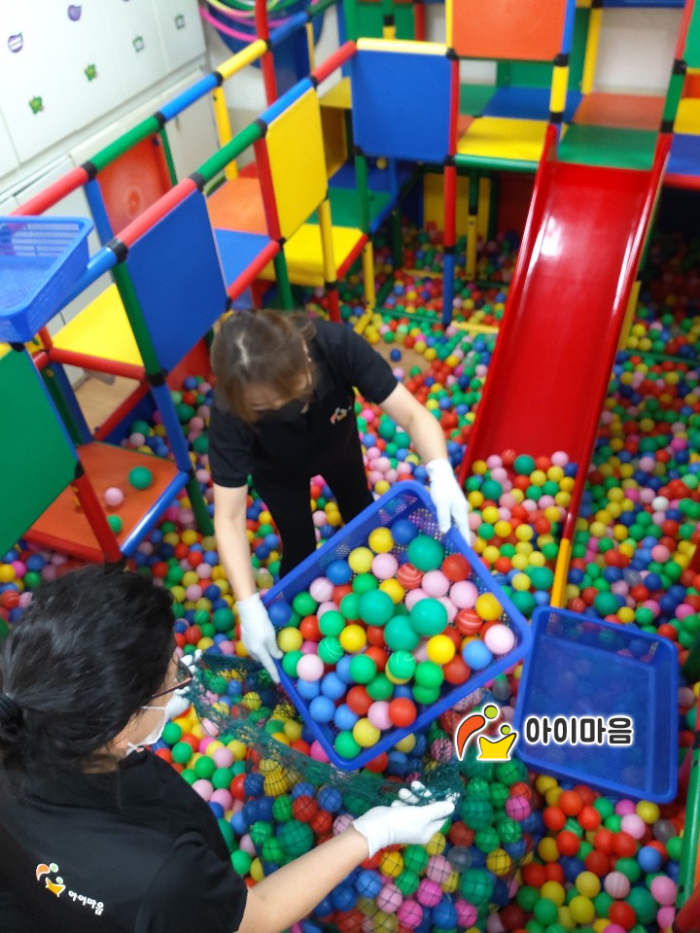 볼풀장을 꼼꼼하게 스팀세척살균소독 하였습니다.