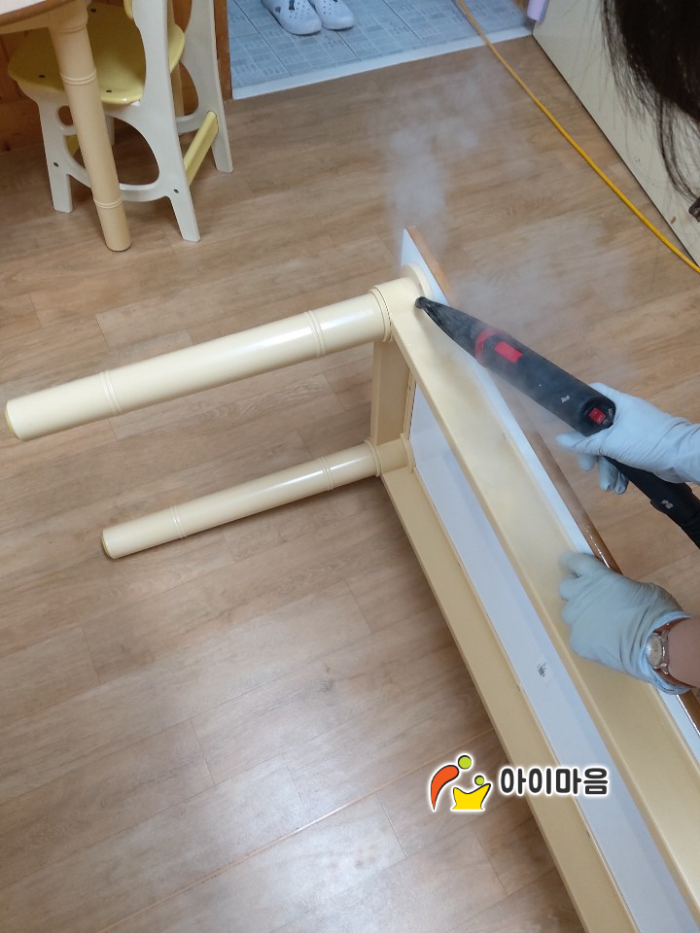 책걸상 및 교구장, 교구재를 스팀세척살균소독 하였습니다.