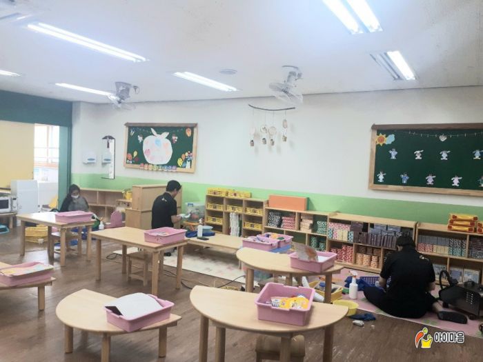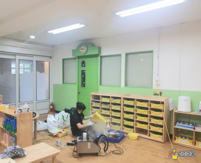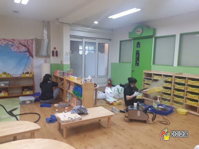 안현초병설유치원의 교구장,교구재,책걸상,장난감,창틀,신발장등을 스팀세척살균소독하였습니다.