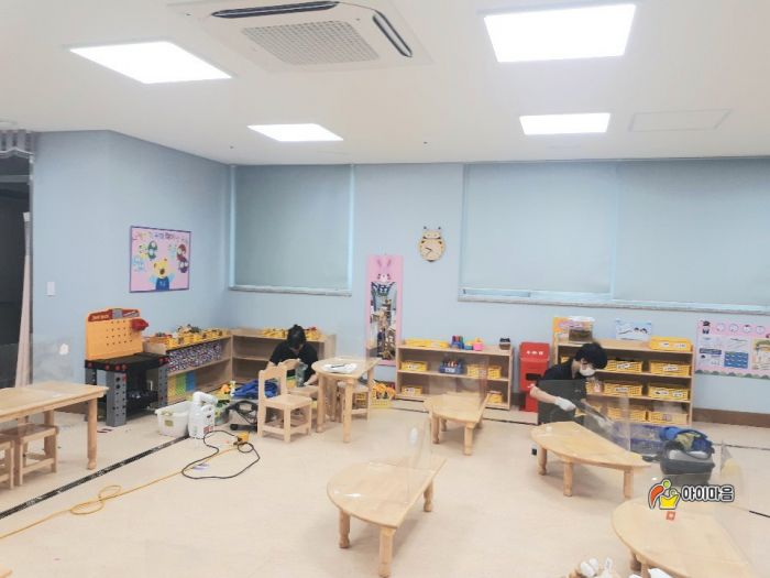 용죽초병설유치원의 교구장,교구재,책걸상,장난감등 교실전체를 스팀세척살균소독 하였습니다