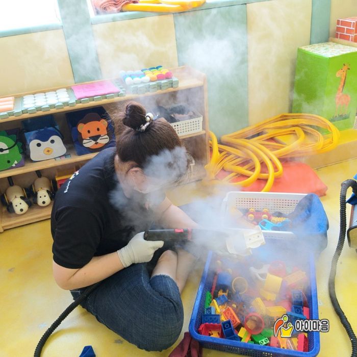 니트꿈나무어린이집의 교구장, 교구재, 장난감류와 카페트등을 스팀세척살균소독 하였습니다.
