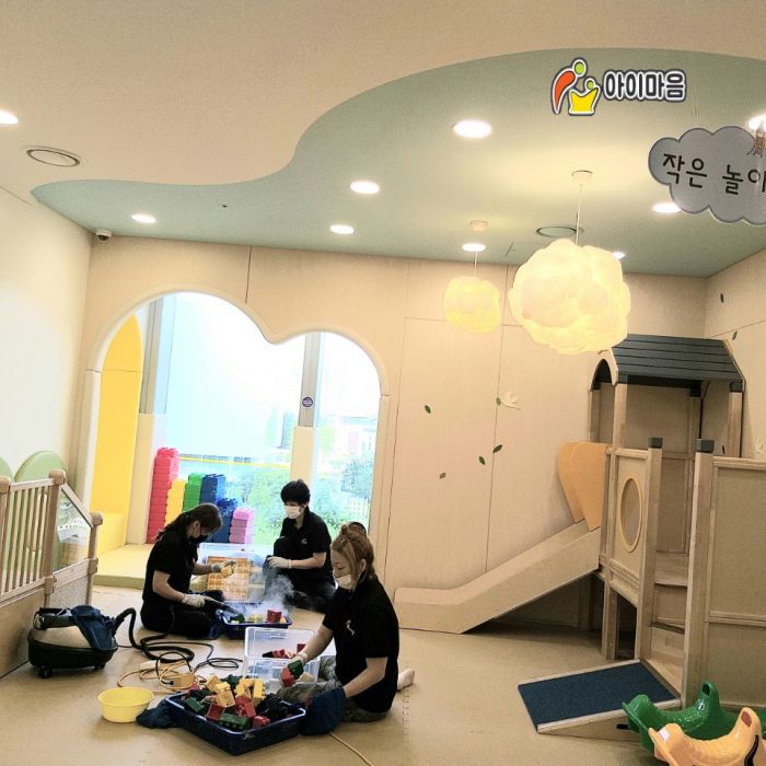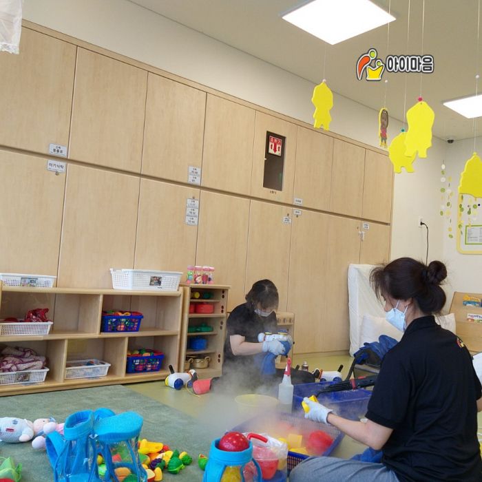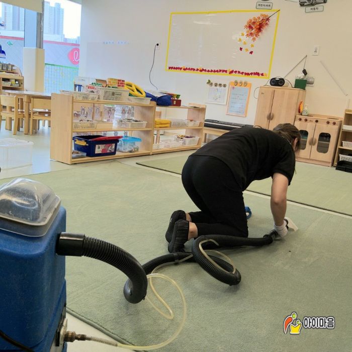 인천에 위치한 포스코타워 꿈나무어린이집의 교구장,책걸상,장난감,카페트등을 스팀세척살균소독하였습니다.